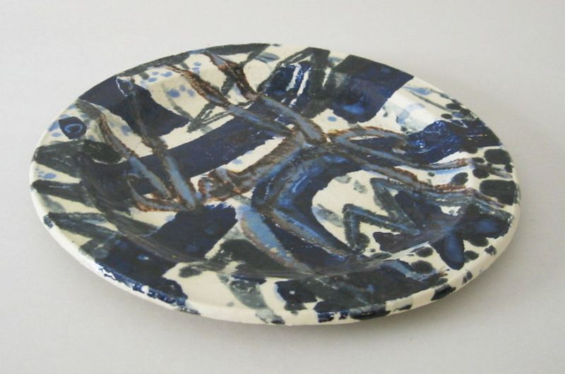 Fayence (weiß), bemalt (schwarz und blau)