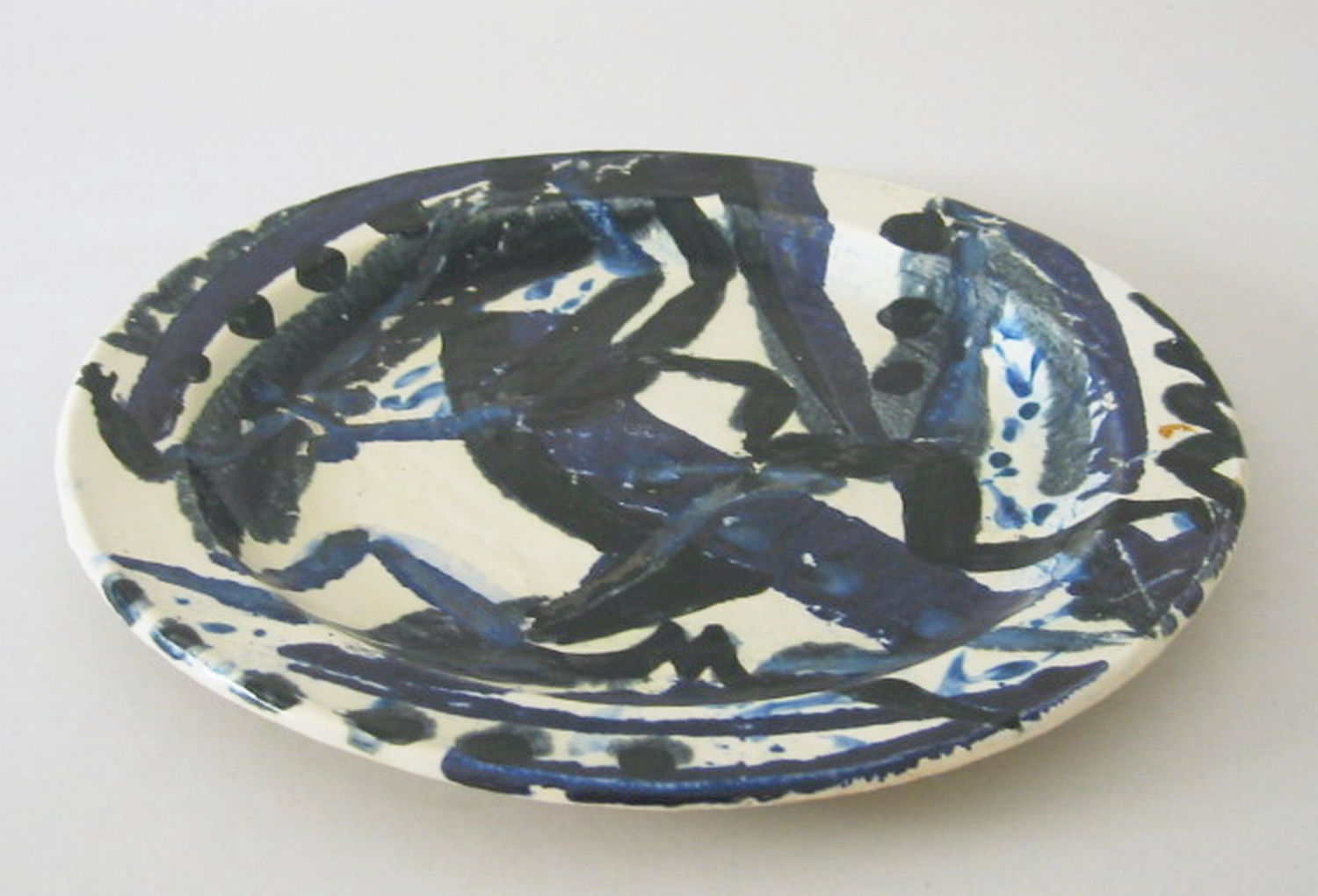Fayence (weiß), bemalt (schwarz und blau)