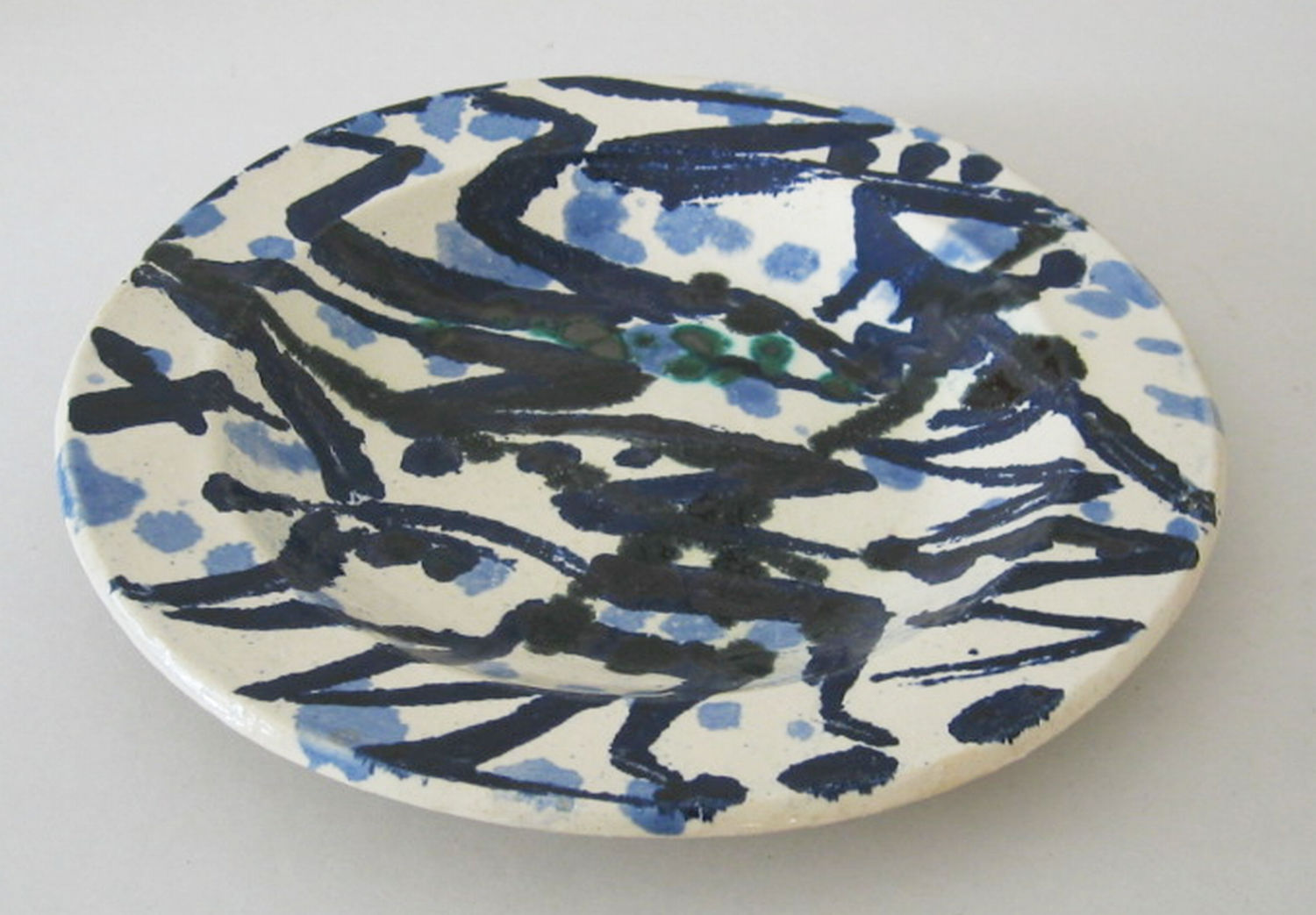 Fayence (weiß), bemalt (schwarz und blau)