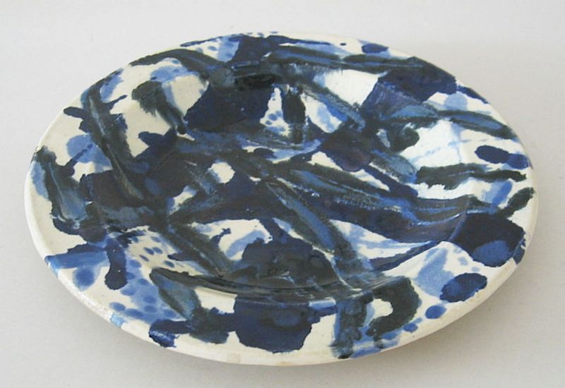 Fayence (weiß), bemalt (schwarz und blau)