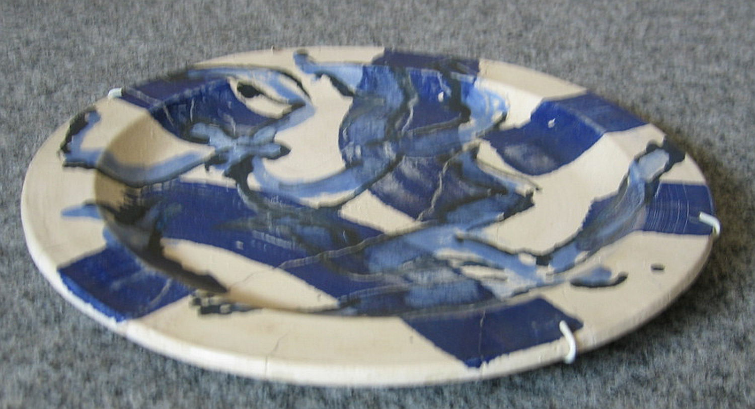 Fayence (weiß), bemalt (schwarz und blau)