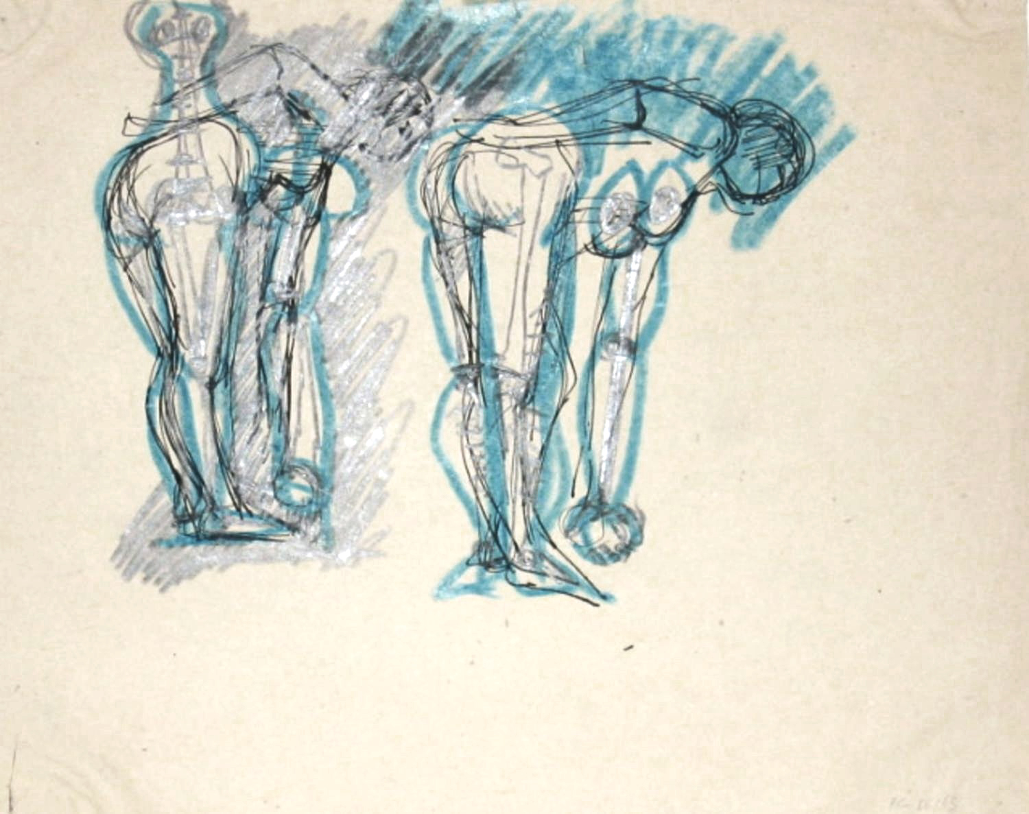 Bleistift und Marker (blau) auf Papier