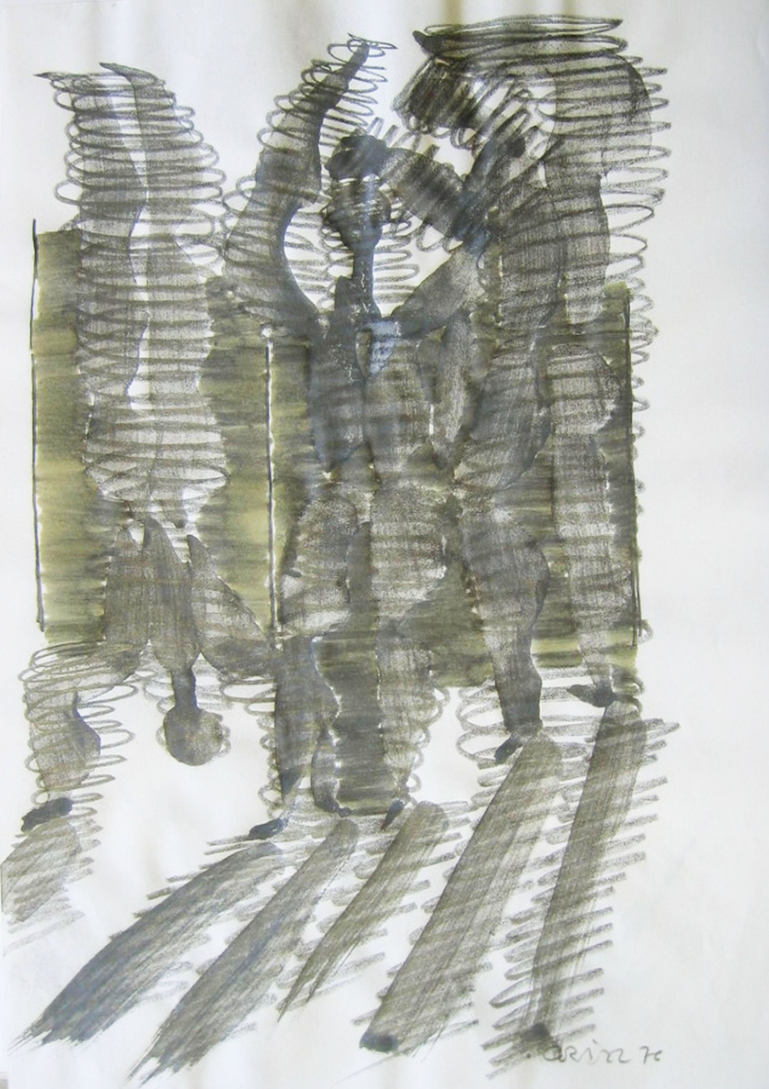 Bleistift und Öl auf Papier